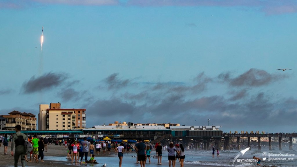 CAPE CANAVERAL, FLORIDA – As the orange flames from the Falcon 9 booster pierced the late morning Florida sky over Cape Canaveral, Florida, SpaceX sent the next batch of Starlink satellites into orbit. For this Falcon 9 Block V booster core (Serial Number B1056), this is the fourth launch. The 60 Starlink satellites on this launch will be placed in three separate orbital planes over the next 20 days.