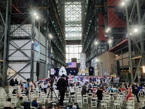 CAPE CANVERAL, FLORIDA – In the aftermath of a completely nominal and successful Falcon 9 launch of Crew Dragon on it’s historic DM-2 crewed flight, a well deserved party ensued in the VAB at Kennedy Space Center. There was much jovial celebrating among the NASA and SpaceX personnel as their respective journeys to the age defining moment when America once again used domestically produced hardware to reach and operate in orbit.