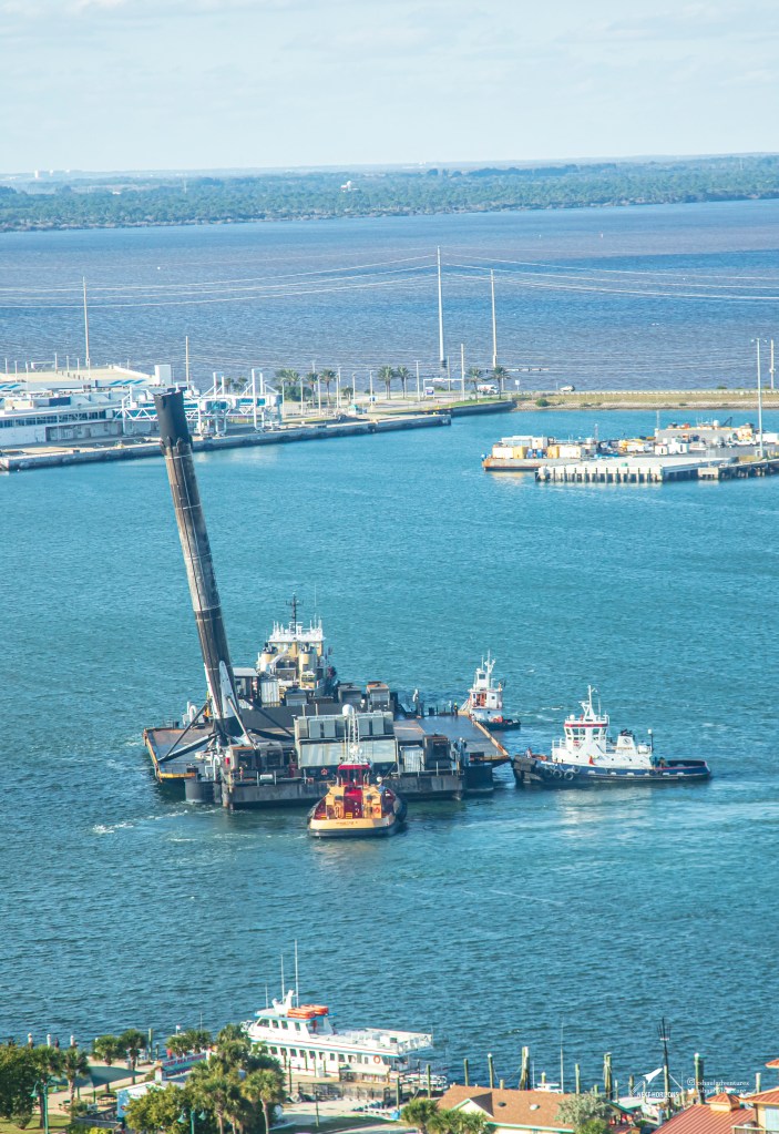 Even with the scrub of NROL-108 on Thursday with booster 1059 SpaceX displayed just how busy this year has been for them. Booster 1051 returned to Port Canaveral just after the NROL-108 mission would have taken place. Last Sunday Dec. 13th the company launched the SXM-7 mission, a satellite for Sirius XM the broadcasting conglomerate. Booster 1051 which flew that mission became the second SpaceX Falcon 9 first stage to successfully launch and land seven times. As with the last launch of astronauts to the ISS (International Space Station) this returning booster had a noticeable lean to it and was also hanging on the edge of the drone ship. If you watched the live feed from the mission you’d have seen both these boosters landed almost dead center of the drone ship. It is believed that rough sea conditions caused them to slid to the edge before workers could get the Octograbber secured to hold them in place. When the mission takes place all crew from the drone ship and tug boat are taken via a support ship several miles away to wait and ensure that safety is a top concern.