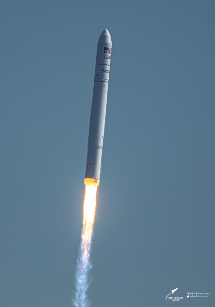 At 12:36 PM Est February 20th, 2020. Atop an Antares rocket from LP-0 from the Mid Atlantic Regional Spaceport