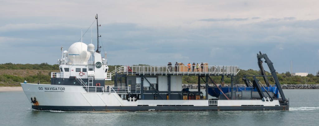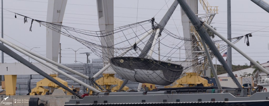 Now jump to yesterday, Shelia Bordelon arrived at Port Canaveral. Shelia Bordelon is an offshore supply ship not too different than some of the other SpaceX ships, but it has one thing non of the others do, a heave compensated crane that can more easily lift fairings from the water. Both Go Navigator and Go Search do have cranes, but they are at their back and move with the boat. Shelia’s crane can reach anywhere in the surrounding water and can even compensate for the motion of the boat. Shelia also has another advantage over the other GO boats, its deck is much larger allowing it to fit at least two fairing halves on deck, while Searcher and Navigator both can only fit a single fairing half on deck. Now with a test fairing on deck, it is all but confirmed that Shelia Bordelon and her big crane will soon be doing fairing recovery in at least some compacity.
