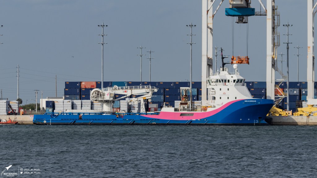 Now jump to yesterday, Shelia Bordelon arrived at Port Canaveral. Shelia Bordelon is an offshore supply ship not too different than some of the other SpaceX ships, but it has one thing non of the others do, a heave compensated crane that can more easily lift fairings from the water. Both Go Navigator and Go Search do have cranes, but they are at their back and move with the boat. Shelia’s crane can reach anywhere in the surrounding water and can even compensate for the motion of the boat. Shelia also has another advantage over the other GO boats, its deck is much larger allowing it to fit at least two fairing halves on deck, while Searcher and Navigator both can only fit a single fairing half on deck. Now with a test fairing on deck, it is all but confirmed that Shelia Bordelon and her big crane will soon be doing fairing recovery in at least some compacity.