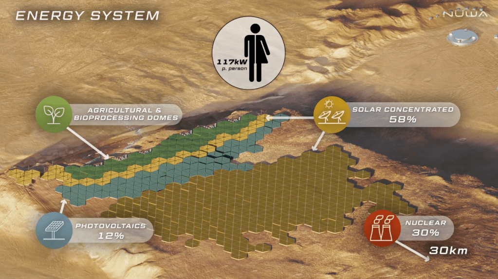 The biggest hurdle identified by scientists to living on Mars is potentially deadly galactic cosmic radiation the planet receives at its surface. The city of Nüwa, along with its proposed sibling cities of Fuxi, Abalos, Marineris, and Ascraeus will all be constructed into cliffs at sites in the Tempe Mensa region of Mars. Building into cliffs as proposed will give these cities the radiation protection needed to allow humans to survive while also giving them access to green spaces and fresh harvests of crops and animals.