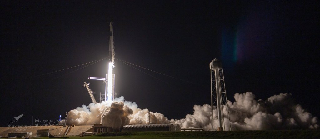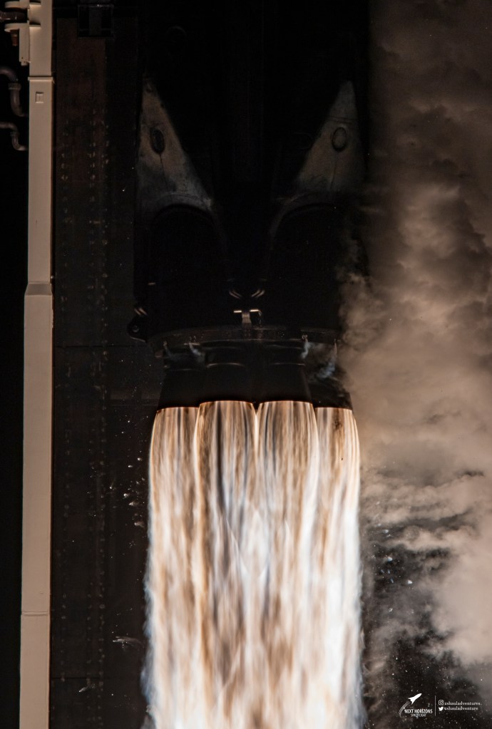 At 8:02 PM Est a sudden flash from beneath the rocket struck out like a match, only the flame continued to grow and grow. There would be no extinguisher that could stop this fire as the nine Merlin 1D engines pushed out almost 1.8 million pounds of thrust to get this mission underway. Cheers erupted from all around the cape, and viewers at home as we saw every day people start their journey to space. Knowing that this could have easily been me or you, know that this was people with every day jobs (mostly) and the average person made us all feel connected to them. As the rocket burned through the sky, slowly at first the quickly moving up the coast turned to day. Those flames almost hard to stare at as they burned so bright. I felt like they were especially bright tonight, perhaps it was as this rocket carried the hopes and dreams of millions wishing to travel to space one day. It was announced that the crew had passed through Max Q, or the moment at which the most aerodynamic forces are on the rocket and a sense of relief washed over the onlookers. That is usually the most dangerous part of a rocket launch. Seconds later the first stage and second stage separated. The first stage, booster 10062 returned to home. Rather the sea at the point really as it would land back on the drone ship “Just Read the Instructions” out in the Atlantic Ocean. The second stage of the rocket ignited, now pushing the crew of Inspiration 4 deeper into space. In fact they are going farther out than the ISS (International Space Station) which has not happened since the 90’s where a mission to fix the Hubble Space Telescope was made. As the sun had just set about thirty minutes prior a light show was performed by the two stages of the rocket when the left each other. In what we call the Jellyfish effect, which is when the angle of light hits the propellant being burned by the systems illuminates the sky making ripples not unlike what a jellyfish looks like. For what seems like minutes crowds stared in awe of the show.