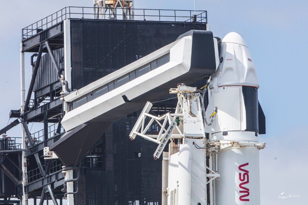 Underneath that second stage is a SpaceX Falcon 9 booster. This will be the second time a flight proven booster will launch astronauts. Booster 1067 has made one flight previously in June of this year where it launched a Cargo Dragon capsule to rendezvous with the ISS (International Space Station). This doesn’t mean the end for B1067 either, about eight minutes after launch the first stage booster will land back down on the drone ship “Just Read the Instructions” which is positioned out in the Atlantic Ocean. Once landed, the 95th landing at that, it will be brought back to Cape Canaveral and refurbished for another flight. Currently the most flights held by a Falcon 9 is tied at ten flights each with B1051 and B1048. We also know that B1051 is scheduled to fly for an eleventh time as it was slated to fly from Vandenburg California on another Starlink mission before that launch was delayed due to some issues with the satellites.
