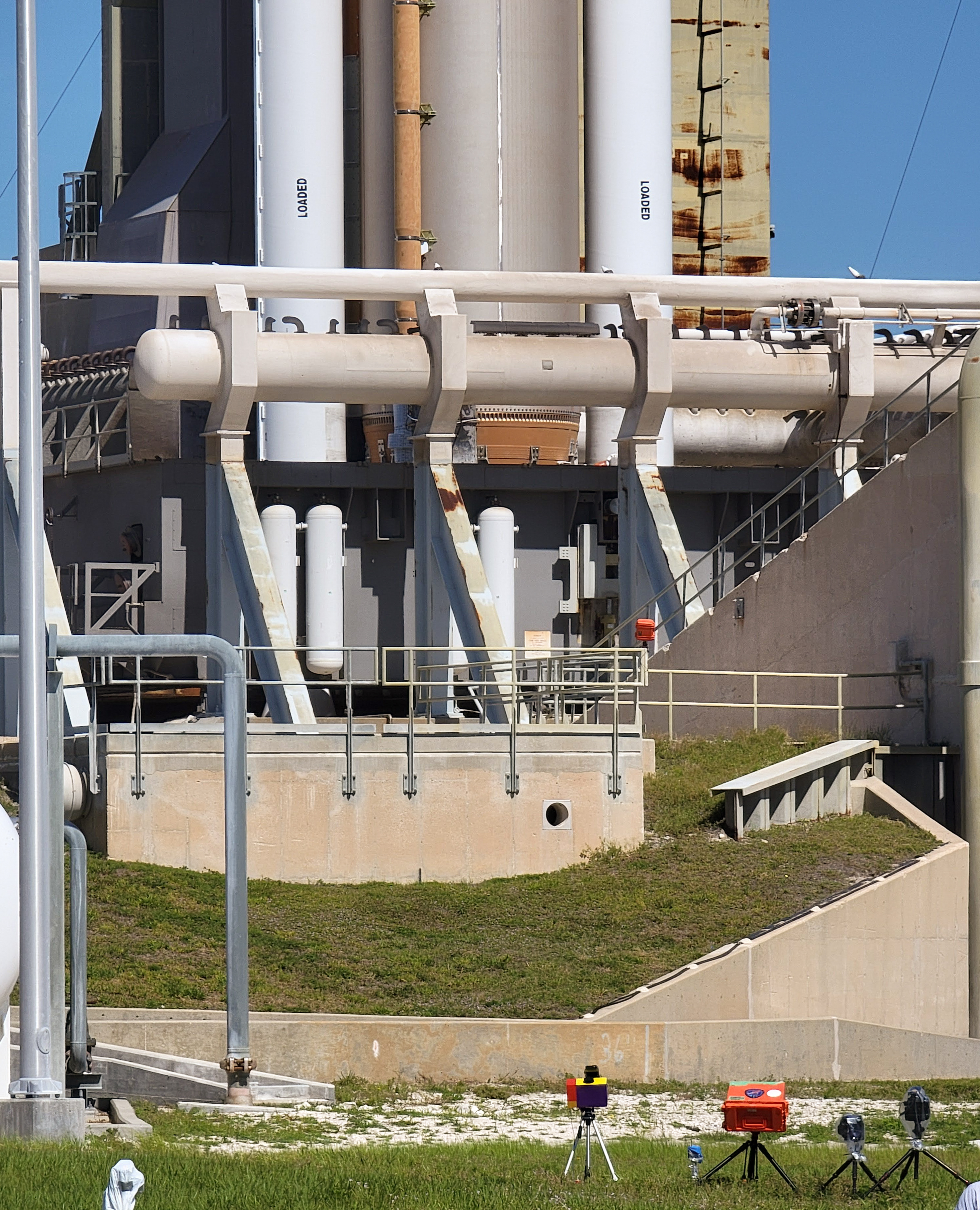 Kennedy Space Center is located on Merritt Island National Wildlife Refuge, so even the pads aren’t as controlled of an environment as you might think, while I’ve never seen any wildlife inside of the pad fences, there is still plenty of nature inside the fences, such as tall grass, mud, and plants with burrs. Some of the spots we set remotes can get muddy so don’t wear your good shoes and pants to a remote set. One partially annoying piece of nature that you can’t escape no matter the pad is burrs, we are usually kneeling down in the grass when we set our cameras and usually we leave with dozens of burrs on our pants; on multiple occasions the burrs have even broke my skin. The grass around pads isn’t the most consistently cut, so the grass is often tall, not a real issue, but it can limit camera placement options if a short tripod is being used. Driving to the pad for remote set I have however seen wildlife, I have had to swerve around tortoises in the road probably a half dozen different times.