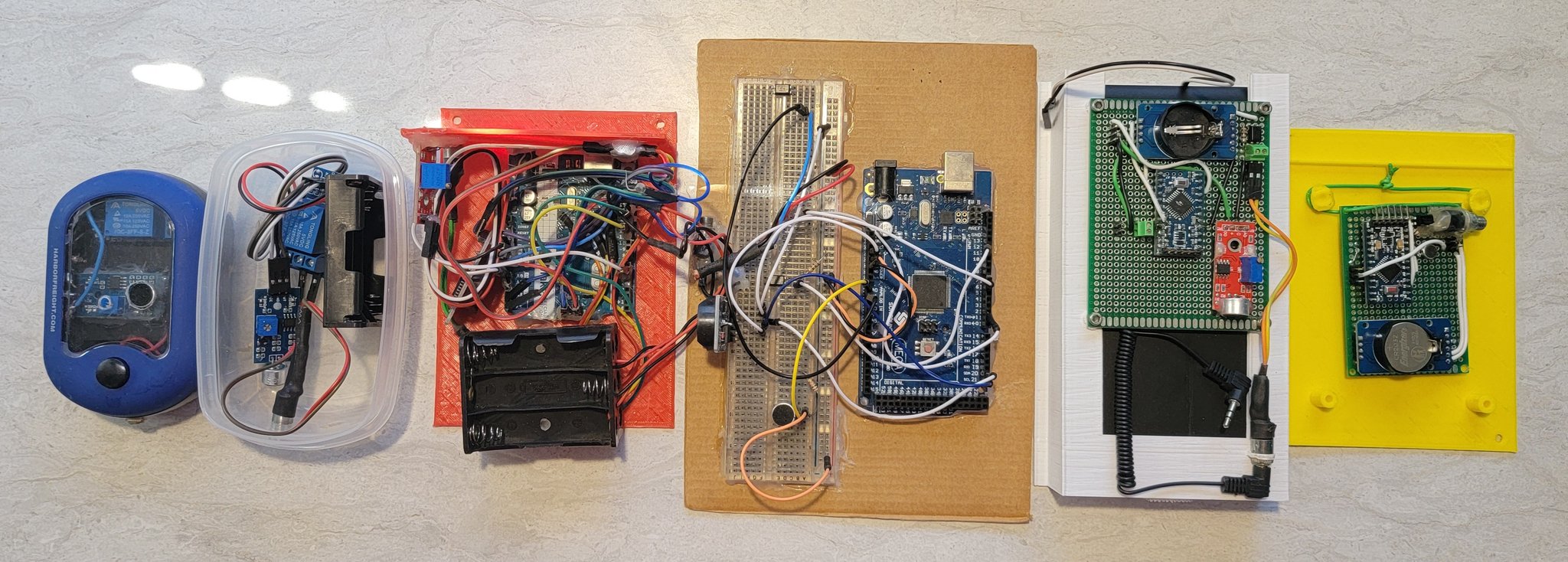 One issue with some sound triggers is false triggers, triggers like miops use a set sound threshold a serious issue with some sound triggers is false firings. Triggers like MIOPS use a set sound sensitivity threshold, which is often set lower to fire earlier. Anything loud before launch can set the cameras off; for example, a rain storm may leave SD cards full, and camera batteries dead if the trigger is set too sensitive. One great feature of my remote camera triggers is that they utilize average sound level rather than a locked sensitivity threshold, enabling my cameras to survive even a heavy rain storm without false triggers.
