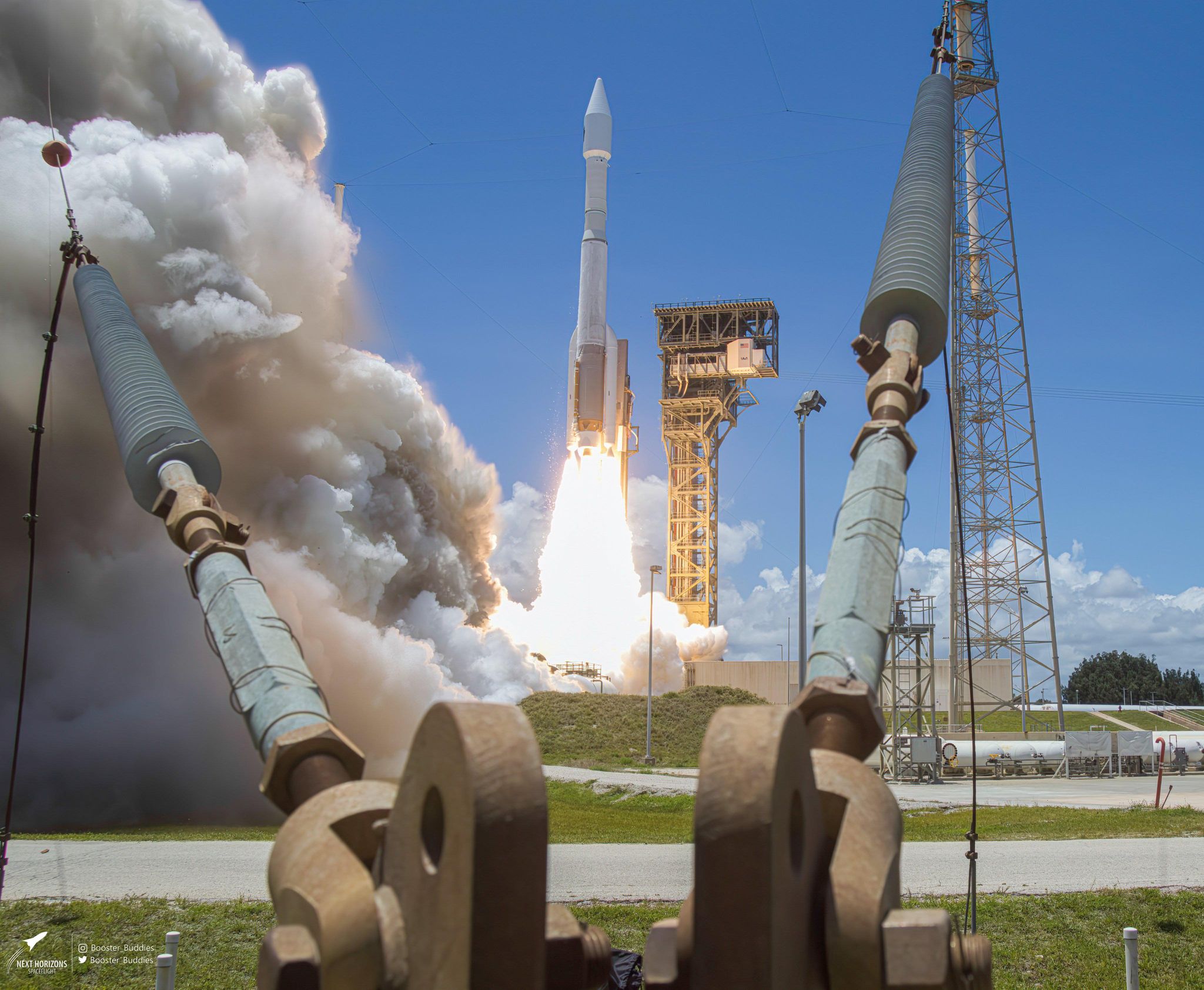 The other thing we have to protect our cameras from is solid rocket booster exhaust, while liquid Another concern the cameras must be protected from is solid rocket booster exhaust. Unlike liquid engine exhaust, the combustion byproducts from solid propellants are very corrosive and basic. Solid exhaust will cause tripods to rust and can destroy the front element of lenses. Photographers could try to protect the tripod, but most will just use our tripods like normal and rinse them off when we get home. In the close remote camera spots, when a rocket uses solids, it is usually wise to use a clear filter to protect the front element.