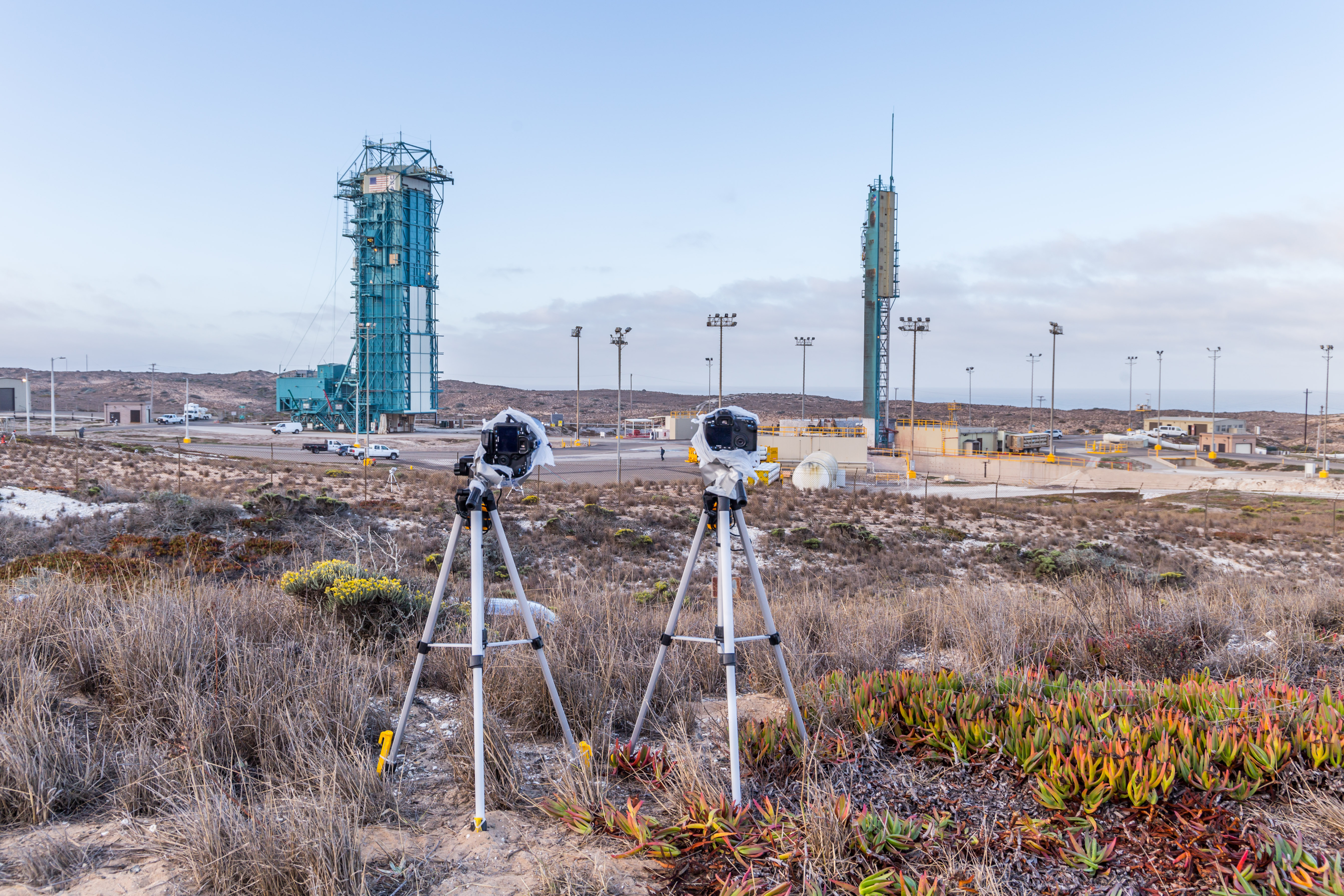 It varies based on launch provider and pad, but generally we aren’t given a large amount of time to set up our cameras, so having cameras prepped before remote setup is important to properly utilize the time you’re out there. Generally, I take a little under five minutes to set each of my DSLR remotes, and about two minutes for my one GoPro. The more cameras you want to set, the more you are pressured to set fast. I only set 3-5 cameras and can finish with time to spare, but others who set more cameras often run out of time, and have to leave with unset cameras. Additionally, besides setting remotes, we like to get photos of the rocket on the pad. Luckily, this process usually doesn’t take up too much time and is often just a few shots taken from next to our cars when we are putting our gear away.