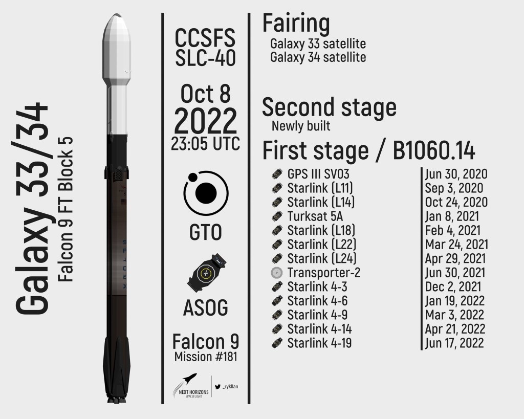 October 9 at 7:05 pm E.T. from SLC-40 at Canaveral Space Force Station