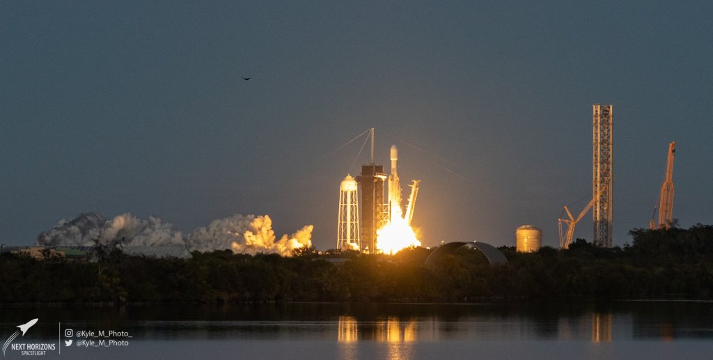 The 207th overall launch for SpaceX came with more booster reusing. The side boosters on tonight’s mission, B1064, and B1065 each flew once before on the USSF-44 mission just seventy-five days ago. That mission, the first Falcon Heavy in over three years brought thousands to the space coast to watch, only to be fogged out from virtually every local viewing location around. The fairings splashed down an impressive 1500 km downrange in the Atlantic and were fished out of the drink by SpaceX recovery vessel Bob.